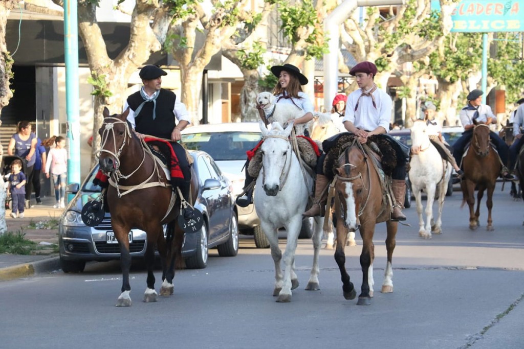 A las 18hs, se desarrolló en el centro de la ciudad el desfile tradicionalista a caballo, desde la Estación de Tren hasta la plaza Casimira Barroso, donde se colocó una ofrenda floral al pie del