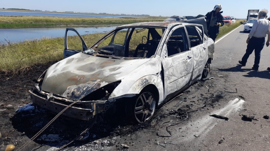 Trabajaron en el lugar Bomberos de Del Valle, pero el auto se incendió con daños totales. En su posteo de Facebook explicó que se encuentra bien, tanto él como la persona que lo acompañaba. Bomberos reportaron su salida a las 14.15 horas de este sábado 20 de noviembre.-