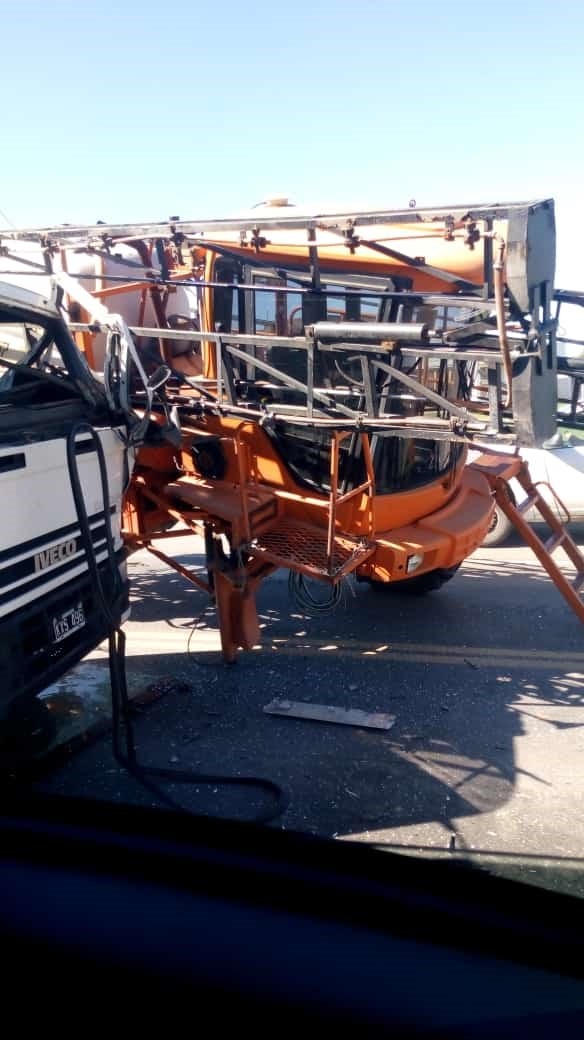 Ocurrió una colisión entre un camión Fiat Iveco 170E22 con dominio colocado KXS 496, conducido por el señor Héctor Nanni que tendría domicilio en Olavarría, una fumigadora terrestre que habitualmente se denomina "mosquito", conducida por Gabriel Aguilar, que sería de Bolívar.