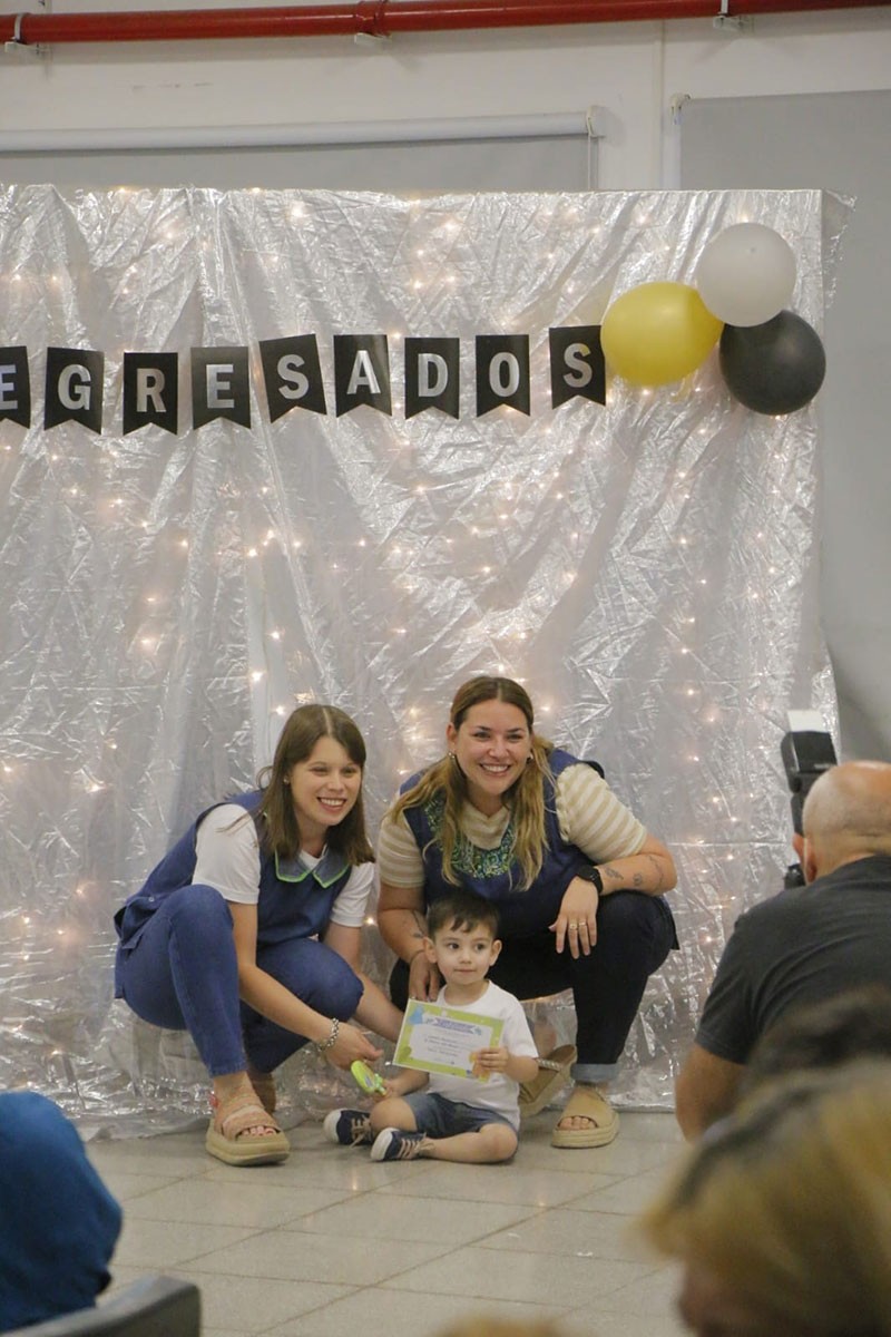 Junto a sus familias, los/as alumnos/as asistieron al emotivo acto presencial, organizado por las docentes y  la directora de los jardines municipales Gisella Gallo.