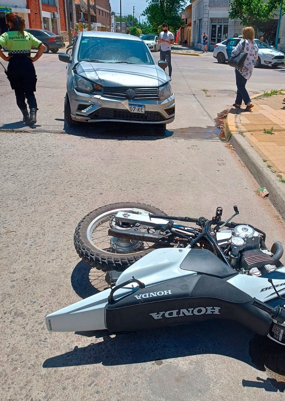 El hecho se dio en horas del mediodía de este jueves en la intersección de calle Roca y Avenida Lavalle al coincidir en tiempo y espacio una motocicleta En Duro y un automóvil.