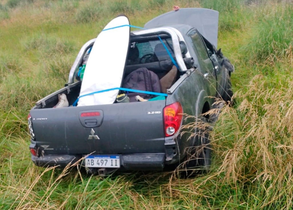 Una pick Up Mitsubishi L-1200 que era conducida por Simón Julián Giovanelli. Domiciliado en la ciudad de San Nicolás, terminó volcando en el préstamo de la rtuta a varios metros de la cinta asfáltica.