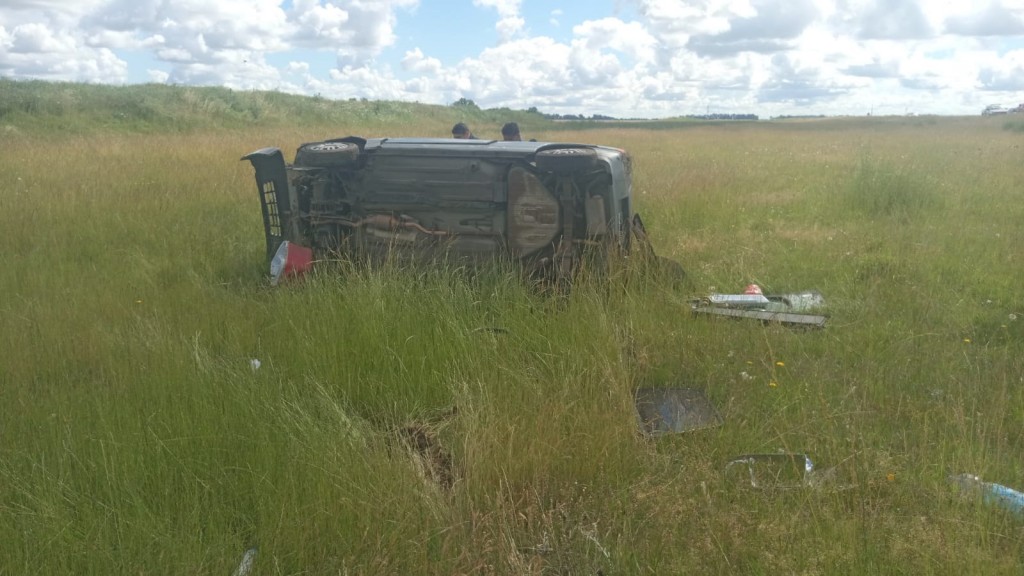 Dos personas oriundas de Berazategui se movilizaban a bordo de un automóvil Fiat Uno Fire, cuando el conductor perdió el control del vehículo y terminó despistando y volcando en el préstamo de la mencionada arteria nacional.