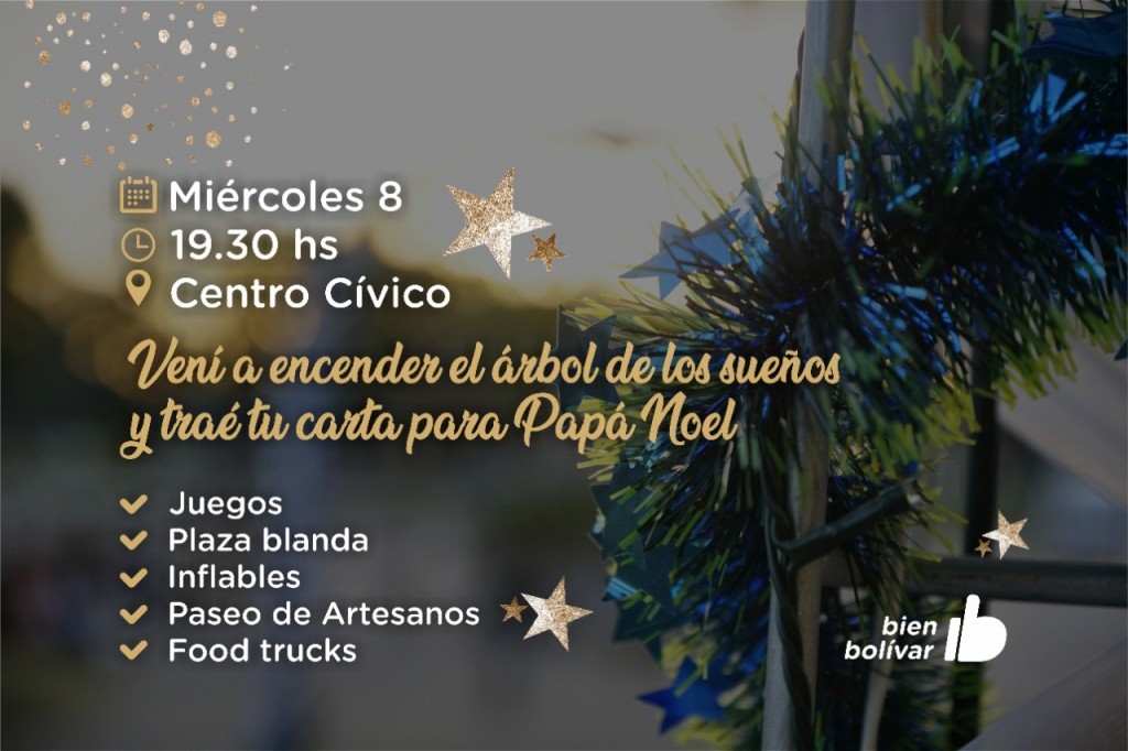Desde el municipio se convoca a toda la comunidad a partir de las 19.30hs, para asistir a las distintas actividades que se llevarán a cabo entorno al encendido del Árbol de los Sueños; habrá juegos, plaza blanda para los más pequeños, inflables, un amplio paseo de artesanos y Food Trucks.