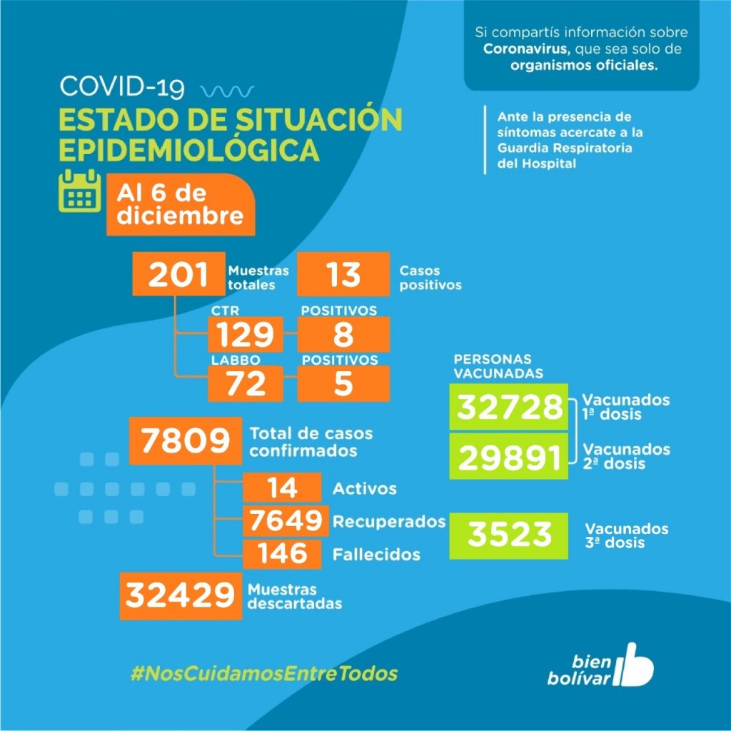 Bolívar acumula 13 casos positivos, si bien se encuentran con el esquema de vacunación completo, excepto una niña de 2 años