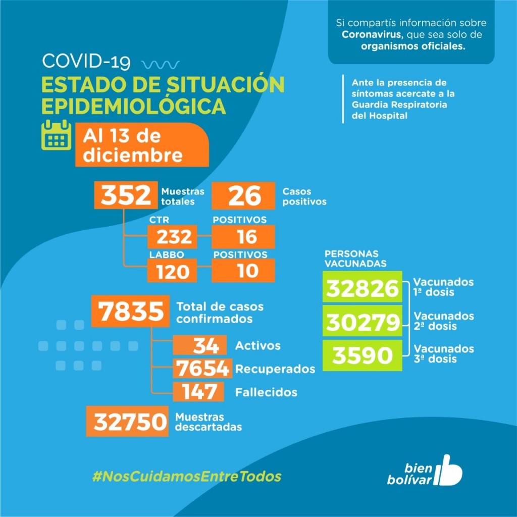 A la fecha por PCR se registraron 10 nuevos casos: masculinos de 23, 28, 46, 47 y 52 años; y femeninas de 30, 33, 44, 51 y 65 años. Por test rápido se registran 16 nuevos casos: masculinos de 22, 24, 26, 35, 39, 68 y 70 años; y femeninas de 19, 21, 24, 26, 27, 30, 33, 41, y 50 años. -