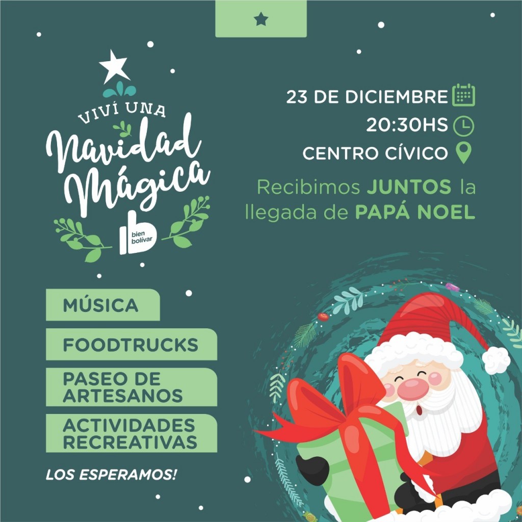 Este jueves, la Municipalidad invita a la comunicad a disfrutar de la Navidad Mágica en Bolívar con la clásica llegada de Papá Noel al Centro Cívico, donde también habrá actividades recreativas y música.