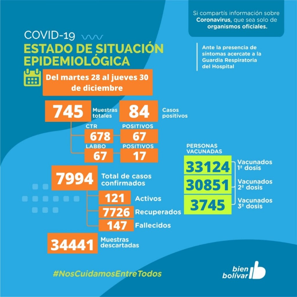 Desde este martes 28 al jueves 30 de diciembre por Test Rápido se registraron 67 nuevos casos: