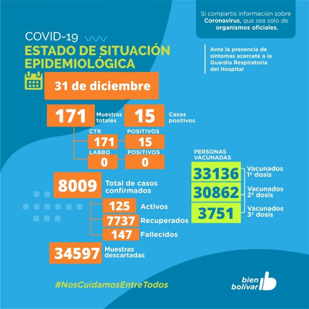 Este viernes 31 de diciembre por Test Rápido se registraron 15 nuevos casos positivos: