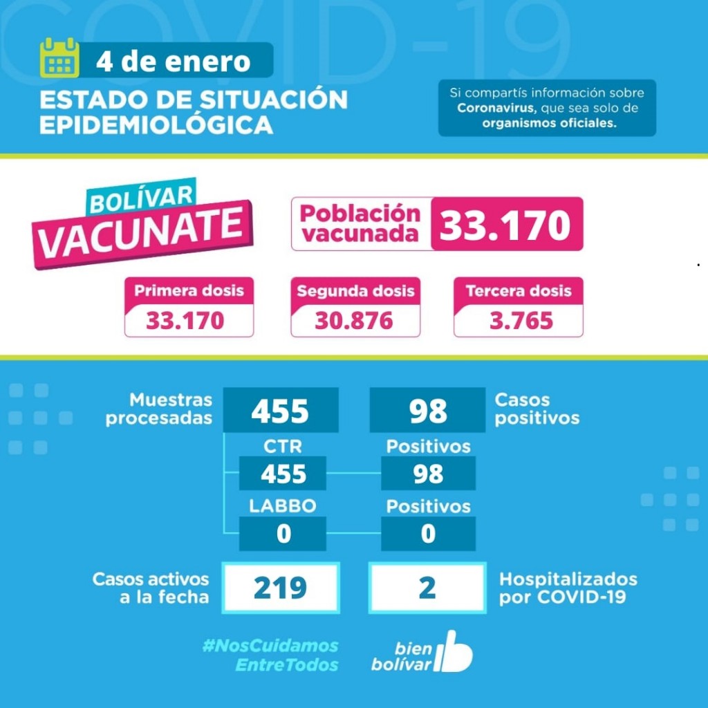 De los 98 casos: 95 son de Bolívar y 3 de la localidad de Urdampilleta