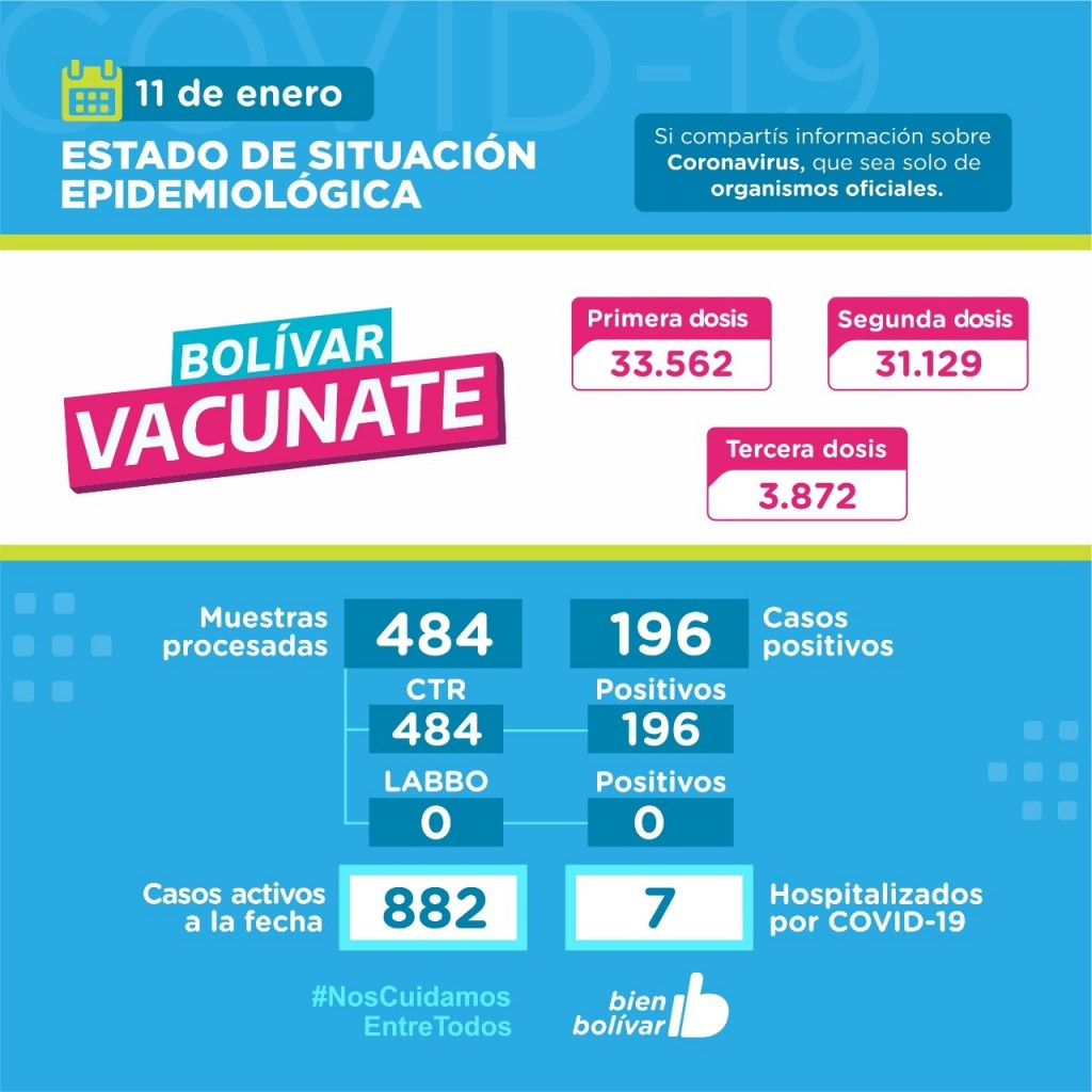 Por otra parte, este martes 11 de enero se contabilizan 54 nuevos recuperados y 7 personas hospitalizadas.