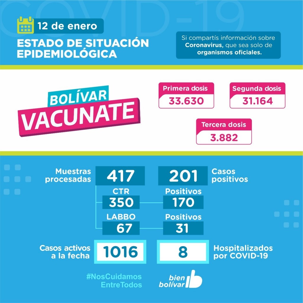 Crece la cifra de bolivarenses que acuden por su primera dosis, en 12 días de enero ya se sumaron 630 personas que ingresan al sistema de vacunación.
