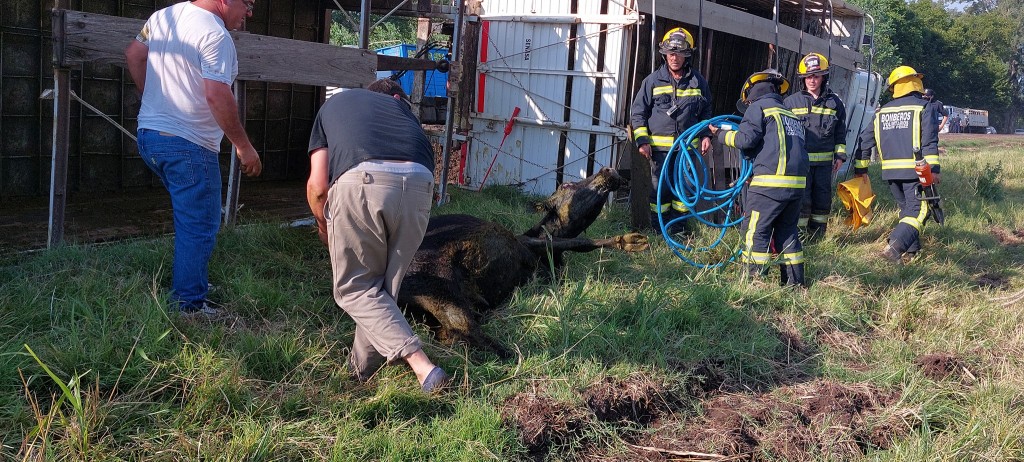 Uno de los animales solamente había quedado atrapado y Bomberos Voluntarios realizó el corte de una reja para liberarlo.