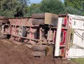 La firma transportista está radicada en el departamento de Atreucó, provincia de La Pamta, y al parecer al pisar la banquina ya no pudo controlar el camión y su acoplado.