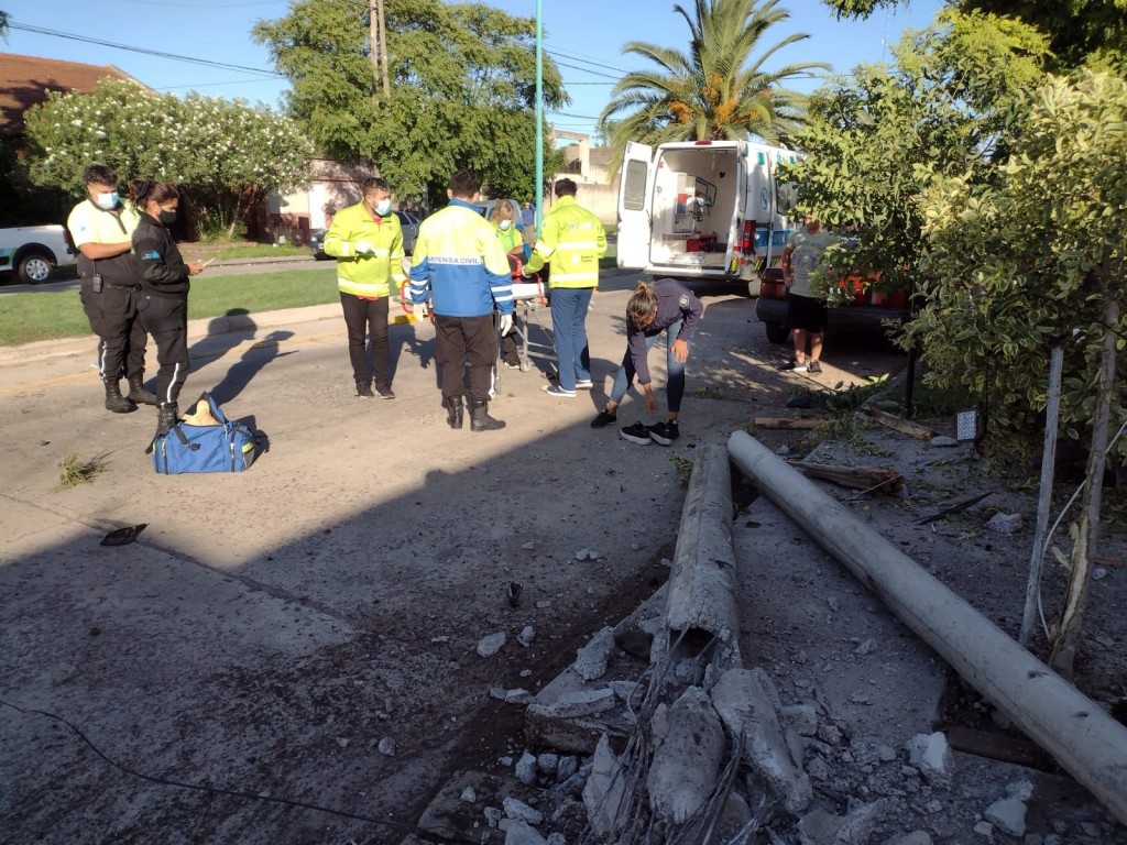 celeEl equipo Emergente de la ciudad debió asistir esta mañana a ese sector de la ciudad, tras la fuerte colisión de una Chevrolet Corsa Clasic, con dominio colado ERV-094, ante una columna de cemento que terminó cayendo.