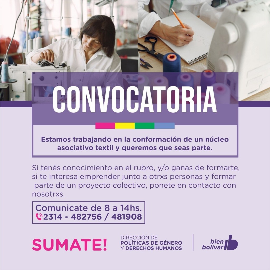 LA DIRECCIÓN DE POLÍTICAS DE GÉNERO Y DERECHOS HUMANOS CONVOCA A LA CONFORMACIÓN DE UN NÚCLEO ASOCIATIVO TEXTIL