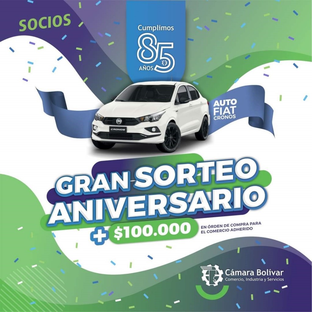 La Cámara Comercial de Bolívar cumplió 85 años, y para celebrar invita a sus socios a participar de la campaña GRAN SORTEO ANIVERSARIO.