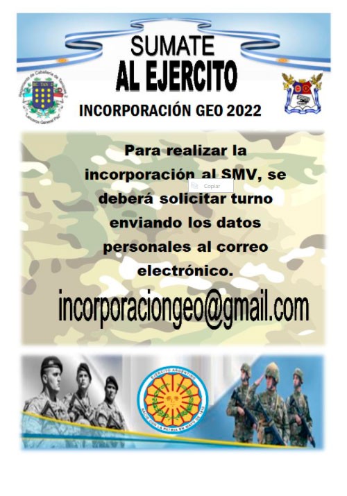 El Jefe de la Guarnición Ejército Olavarría Teniente Coronel Cristian CASTELLANOS, pone en conocimiento a los ciudadanos que se encuentra abierta la inscripción al servicio militar voluntario prevista para el corriente año.
