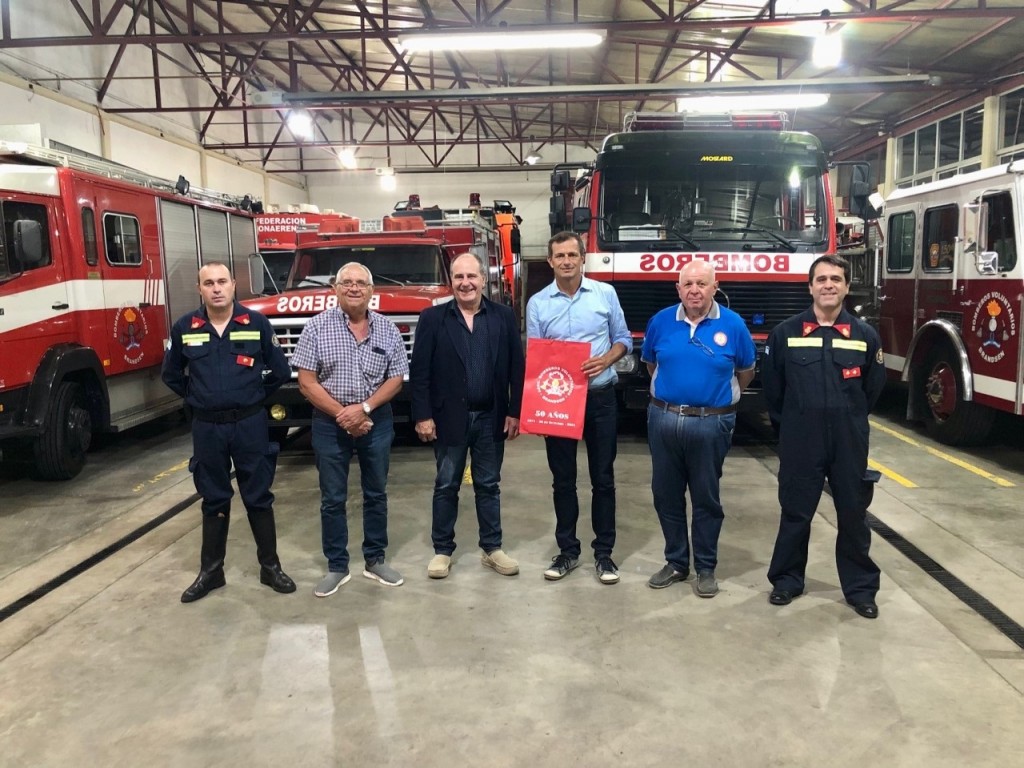 Invitado por la Federación Bonaerense de Bomberos Voluntarios, lo acompañaron en su recorrido Daniel Correa, Tesorero de la Federación de Bomberos Bonaerenses, Daniel Vicente, Presidente de la Federación, el jefe del cuerpo activo y el intendente. -