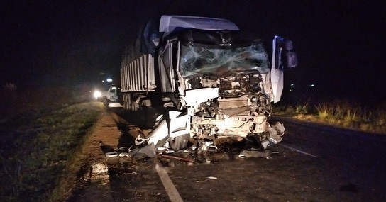 TulaUn camión que viajaba en dirección 9 de Julio – Bolívar, detiene su marcha tras reventar dos neumáticos de su acoplado, por lo que un móvil del CPR  baliza la zona, ya que el vehículo había quedado invadiendo parte de la cinta asfáltica, momento en que un camión Ford Cargo dominio AD867QZ con batea cargada con granos de soja que circulaba en sentido contrario Bolívar – 9 de Julio, merma su marcha en el lugar del transporte con sus neumáticos dañados y pocos segundos después es embestido en su parte trasera por otro camión de la misma empresa, también cargado con granos.