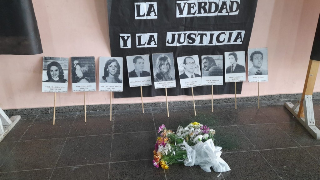 Previamente, la compañía teatral La Barraca junto a integrantes de la Fábrica del ritmo, interpretaron la canción Soy. La ofrenda floral debido a las condiciones climáticas, se entregó esta vez a la directora de la Escuela que alojó a los presentes, para ser colocada el día de mañana por los alumnos y alumnas de la  institución, frente al monolito que recuerda a nuestros desaparecidos.