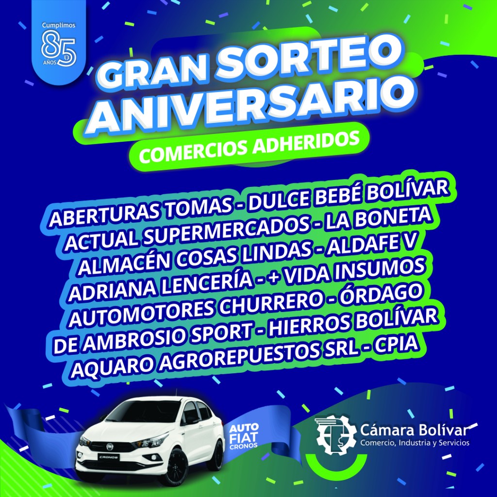 Con motivo de celebrar 85° años de trayectoria, la Cámara Comercial de Bolívar lanzó a la comunidad su Gran Sorteo Aniversario.