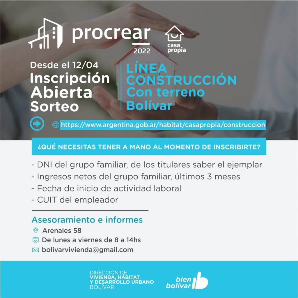 La Dirección de Vivienda, Hábitat y Desarrollo Urbano de la Municipalidad de Bolívar ofrece asesoramiento para realizar la inscripción al programa. Los interesados/as pueden acercarse de lunes a viernes de 8 a 14hs a la oficina del área municipal, ubicada en Arenales 58, o contactarse a través del correo electrónico [email protected].