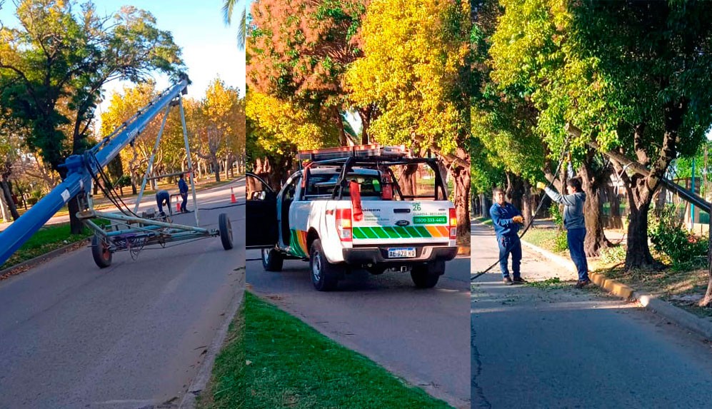 Una camioneta que remolcaba un Sinfín, cortó parte del tendido eléctrico en avenida 25 de Mayo y Mitre