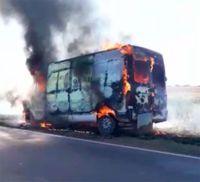 La información es de carácter extraoficial, pero las imágenes evidencian los daños en el utilitario siniestrado a la altura de Santa Teresita. La dotación con los servidores públicos trabajó en la extinción y enfriamiento posterior, quedando el vehículo sobre la banquina, a disposición de su propietario. Lógicamente con daños totales.-