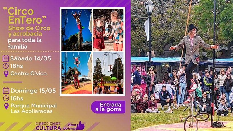 En Bolívar, el show a la gorra tendrá lugar el sábado a las 16hs en el Centro Cívico y el domingo a las 16hs en el Parque Municipal Las Acollaradas.