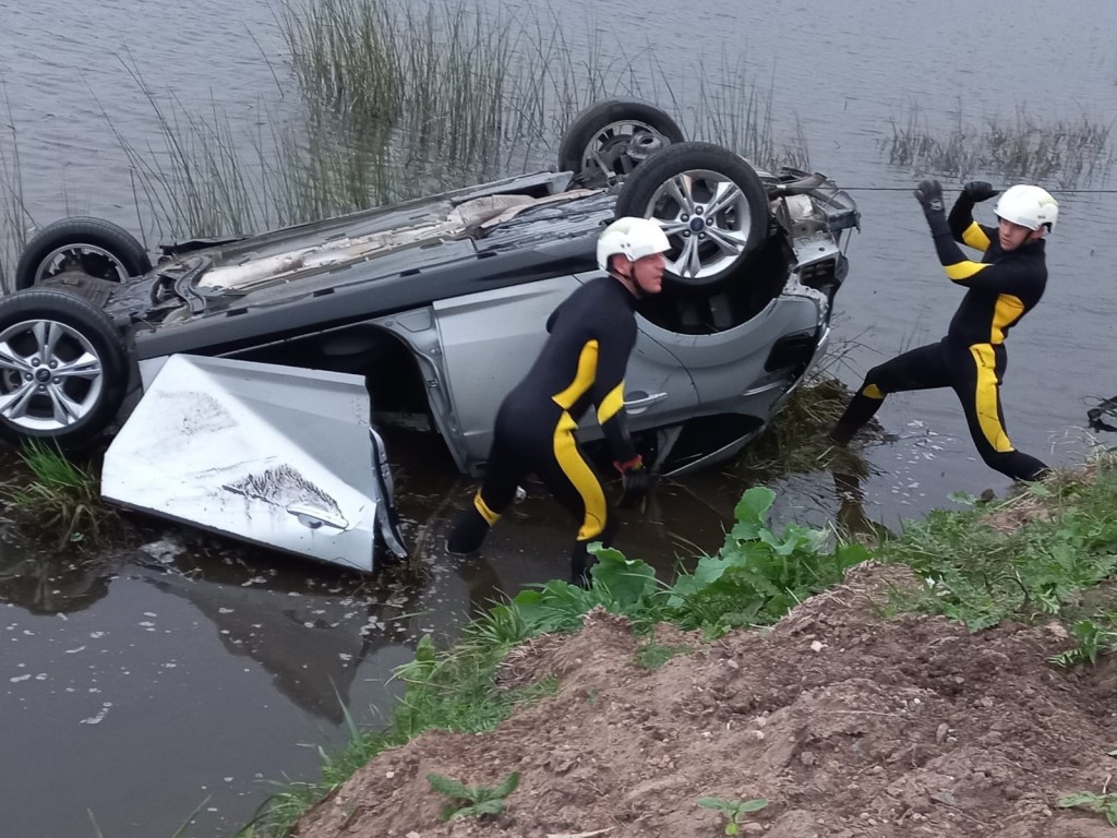 autoEl vehículo quedó sumergido en una cuneta de profundidad importante, el Equipo Emergente confirmo que es una persona mayor de edad de sexo masculino y se encuentra fallecida