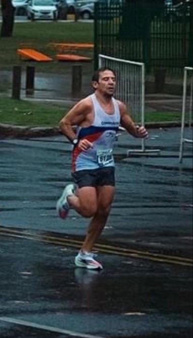 Gabriel comentó que fue en compañía de Manuel Santos. “Siempre las Fiestas Mayas son un carrerón en Buenos Aires, concurre mucha gente y la veníamos preparando”, añadió. En la previa se largó a llover, “la carrera se largaba a las 8 de la mañana y no aflojaba”, indicó el atleta, por lo que media hora antes comenzaron con la entrada en calor para ya después esperar la largada.