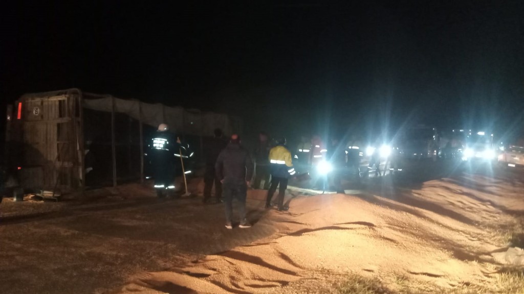 El Equipo Emergente debió actuar por la noche de este jueves, tras un accidente acaecido en ruta nacional 226. Por causas a establecer, el conductor de un camión Mercedes Benz, con dominio colocado RHO102, que remolcaba un acoplado con dominio WGR354, protagonizó el vuelco con el derrame parcial de la carga.