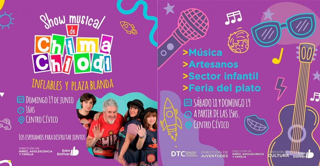 Mientras que el domingo 19 a las 16hs, las familias podrán disfrutar del espectáculo musical de Chima Chiodi, que ofrecerá un conjunto de canciones que invitarán a divertirse, cantar y bailar.