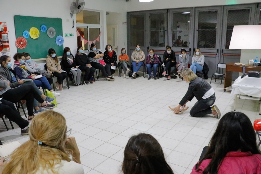 Las docentes y personal auxiliar que forman parte de los Jardines Maternales Municipales realizaron una capacitación sobre RCP y Primeros Auxilios en Pediatría, en las instalaciones del Jardín El Reino del Revés.-