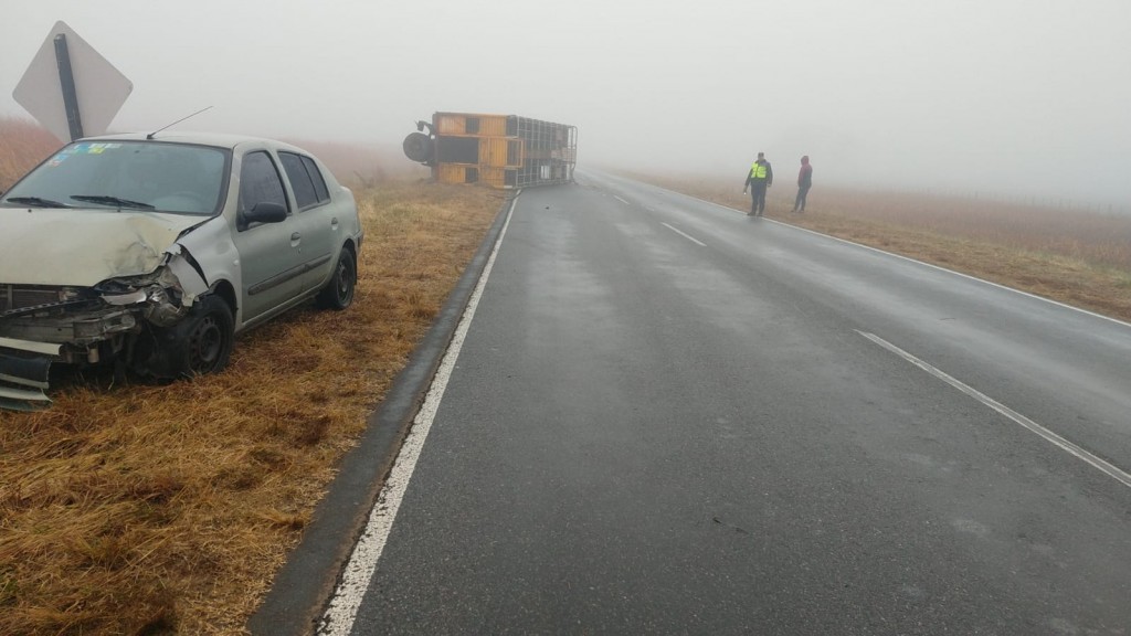En el lugar, un camión proveniente de Córdoba, se fue a la banquina y el acoplado quedó volcado sobre la ruta. Un Renault Clío que circulaba por el lugar conducido por una mujer de Pehuajó, lo embistió.