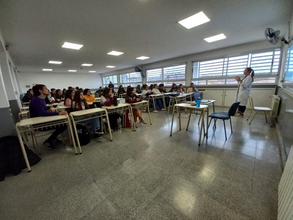 El taller es un espacio pensado y diseñado con el objetivo de construir saberes en forma teórica y experimental, y en este sentido acompañados por el profesor de Química Nicolas Martínez, fueron recibidos en el LABBO por la bióloga molecular y biomédica Rocío Larreche.