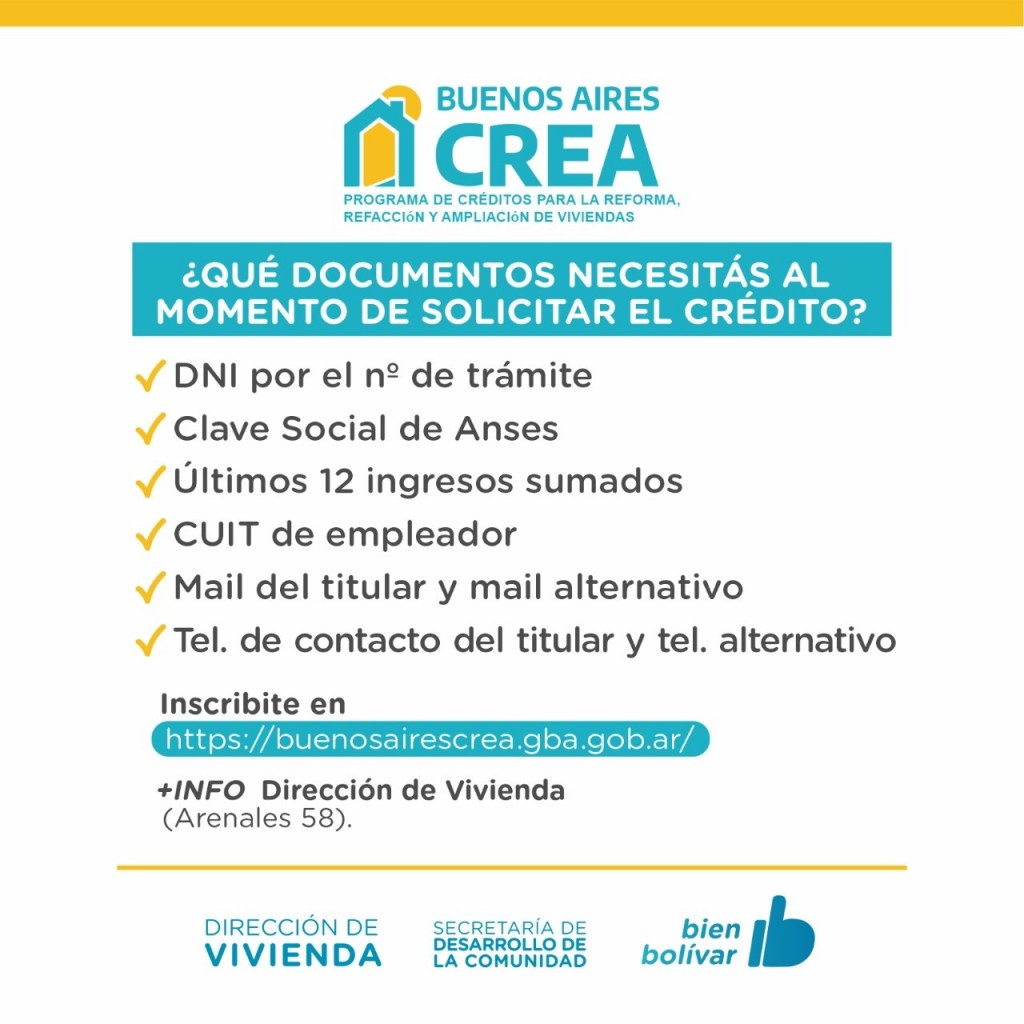 Hasta el jueves 18 de agosto se encuentra abierta la inscripción al programa Buenos Aires Crea 2022, en el marco del cual se otorgarán créditos para la reforma, refacción y ampliación de viviendas. -