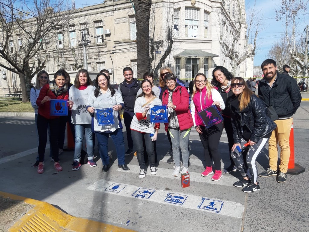 DÍA DEL PEATÓN: SE PINTARON PICTOGRAMAS EN LAS SENDAS PEATONALES DE BOLÍVAR