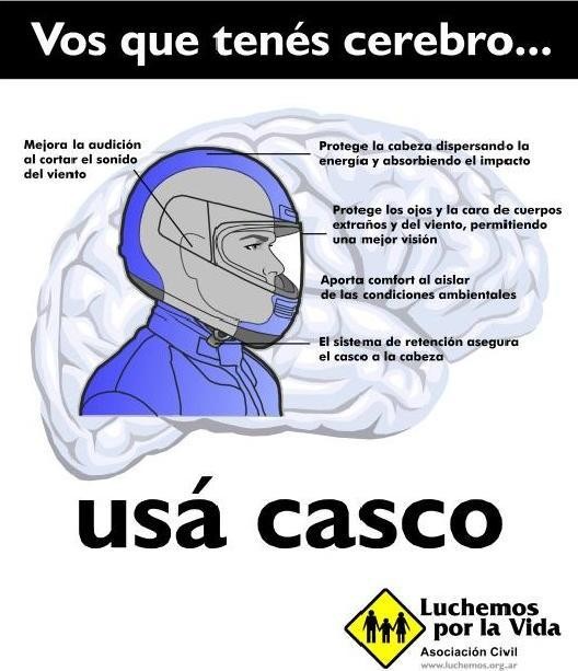Los motociclistas que lo usan tienen un 73% menos de mortalidad y hasta un 85% menos de lesiones graves que los que no lo usan. Más de 2.000 vidas podrían salvarse por año si todos los que circulan en moto y ciclomotor usaran siempre un casco homologado.
