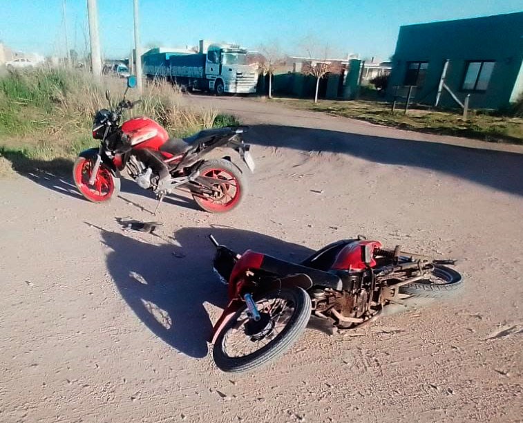 Ocurrió  una colisión entre un motovehículo Honda CB 250, con dominio colocado (A163PFJ), conducida por un joven mayor de edad, y una moto Gilera Smash 110, en la que transitaba otro bolivarense.