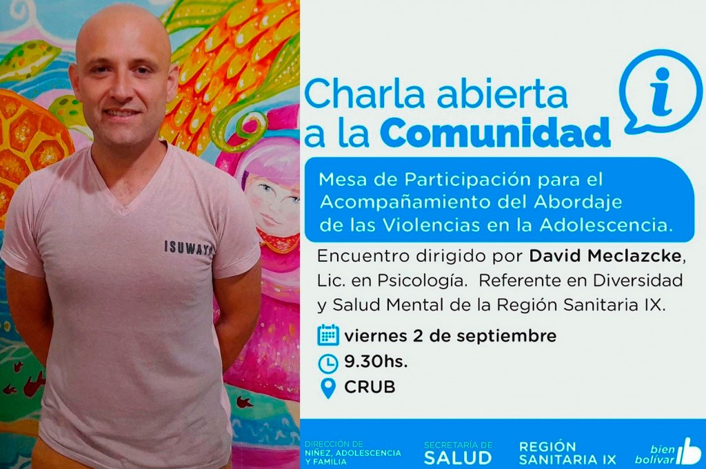 El encuentro organizado por las áreas municipales a cargo de Cesar Tordó y María Stella Jofré, estará dirigido por el licenciado en Psicología David Meclazcke, referente de Diversidad y Salud Mental de la Región Sanitaria IX.    “Diseñamos este encuentro para poder pensar juntos las distintas formas de abordaje de una temática compleja y transversal que requieren del compromiso de todos. Es un tema recurrente que se da en todos los ámbitos donde chicos y chicas transitan”, explicó Tordó.   La Mesa de Participación para el Abordaje de las Violencias en la Adolescencia está dirigida a las familias, equipos de trabajo vinculados a los niños y las niñas, comunidad en general, y desde Jefatura Distrital de Educación se convocó a los equipos de orientación escolar de las instituciones educativas del Partido.    “El objetivo es que a partir de este encuentro podamos construir un protocolo de trabajo para el acompañamiento y para estar cerca de los y las adolescentes”, sostuvo Tordó.