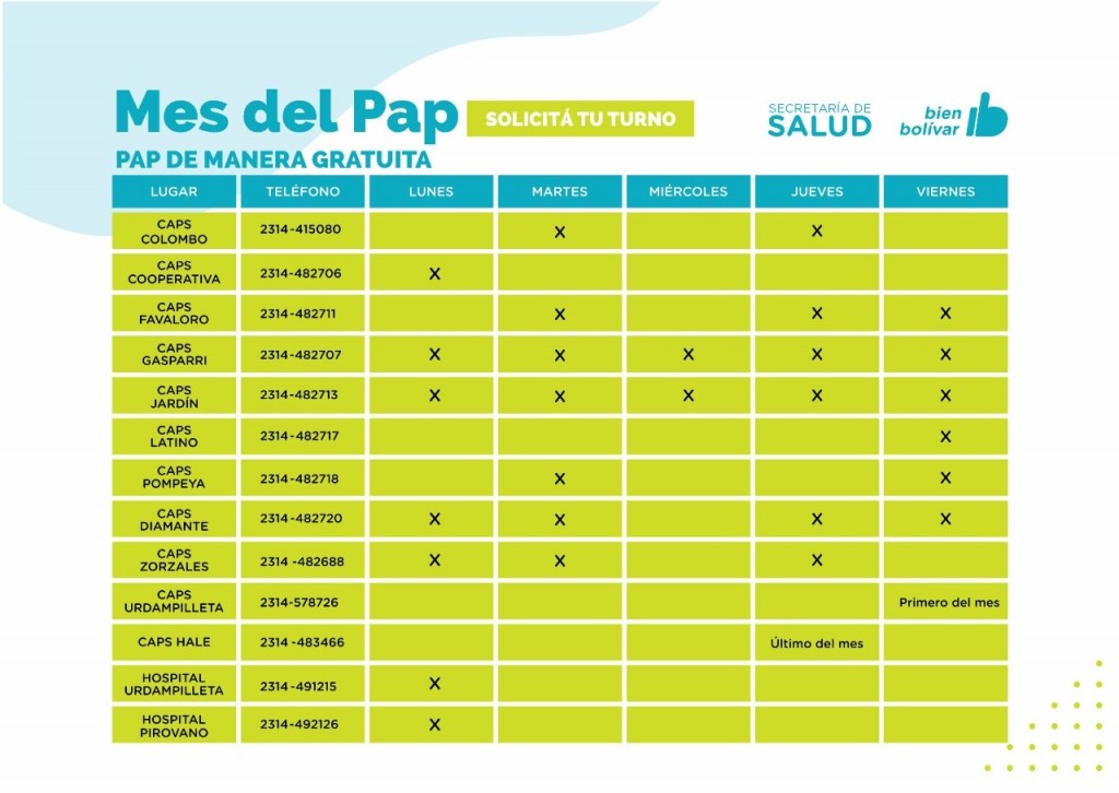 En el Mes del PAP, la Secretaría de Salud lleva adelante la campaña de prevención que tiene como objetivo prevenir el cáncer de cuello de útero y está dirigida a mujeres de 35 a 64 años. Las interesadas podrán acceder al test en forma gratuita durante todo el mes de septiembre.-