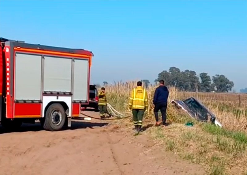 Bomberos Voluntarios con la unidad nº5, a cargo de Leandro Asín, y el Jefe de Defensa Civil Roque Bazán, recuperaron el vehículo, dejándola en posición de circulación.-