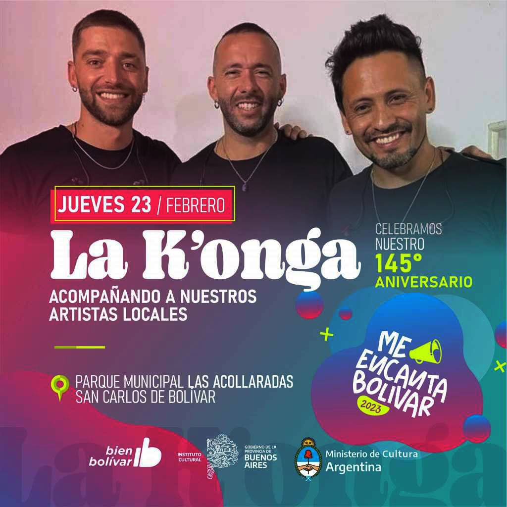 Desde el jueves 23 hasta el sábado 25 de febrero, viviremos 3 noches con artistas locales, regionales y nacionales. Este año, con la presencia de La K'onga, banda suceso formada en Villa Dolores y liderada por las voces de Pablo Tamagnini, Nelson Aguirre y Diego Granadé.