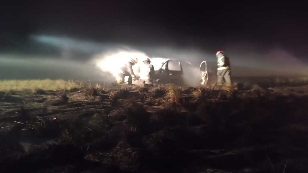 "Trabajamos en la extinción del incendio de un Chevrolet Corsa y después se expandió a banquinas"