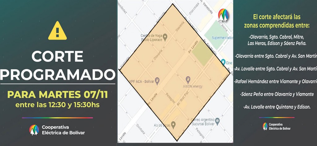 Se prevé corte programado para hoy martes 7 de noviembre entre las 12.30 y 15.30 horas