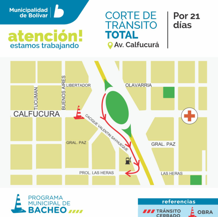 Corte programado por la Dirección de Obras Publicas a partir de este martes 8/10 en el marco del Programa Municipal de Bacheo.