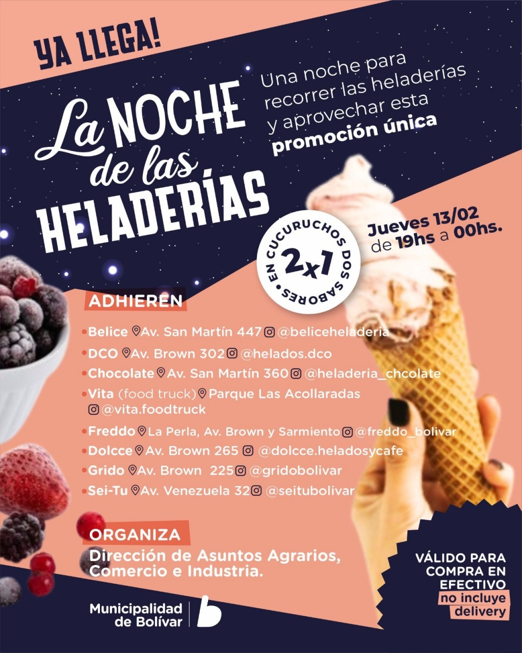 Asuntos Agrarios, Comercio e Industria: El Municipio realizará “La Noche de las Heladerías en Bolívar”