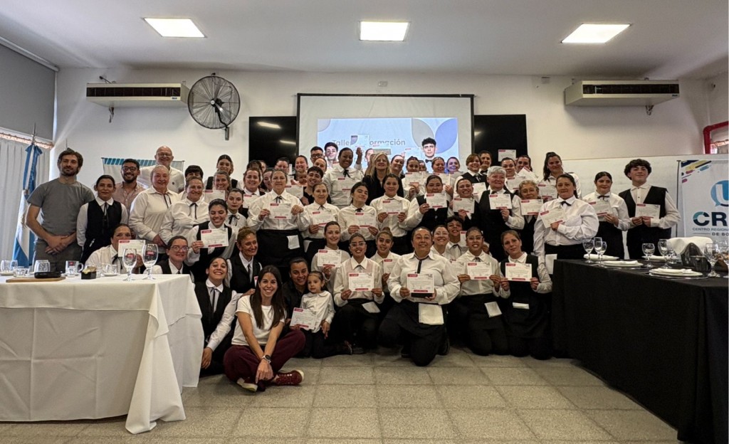 Con la entrega de diplomas en el CRUB, 65 personas concluyeron el taller intensivo de mozos y camareras, una propuesta municipal orientada a fortalecer la formación en servicios gastronómicos y responder a la creciente demanda del sector. La intendenta interina María Laura Rodríguez acompañó el acto de finalización del taller, junto al director de Asuntos Agrarios Mariano Sarraúa y al director de Turismo Emilio Leonetti. -
